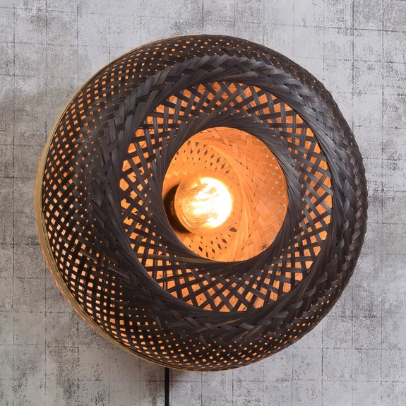 L'enveloppe extérieure visible et présente de l'abat-jour fabriqué en bambou est de couleur noire et contraste directement avec la face intérieure de couleur naturelle et la face inférieure tout aussi naturelle. Grâce à cette coloration claire, la lumière semble encore plus chaude et agréable et dégage une ambiance confortable. Semblable à un panier tressé, il en résulte un motif avec de nombreux interstices par lesquels la lumière peut également s'échapper et dessiner un superbe motif dans l'environnement.