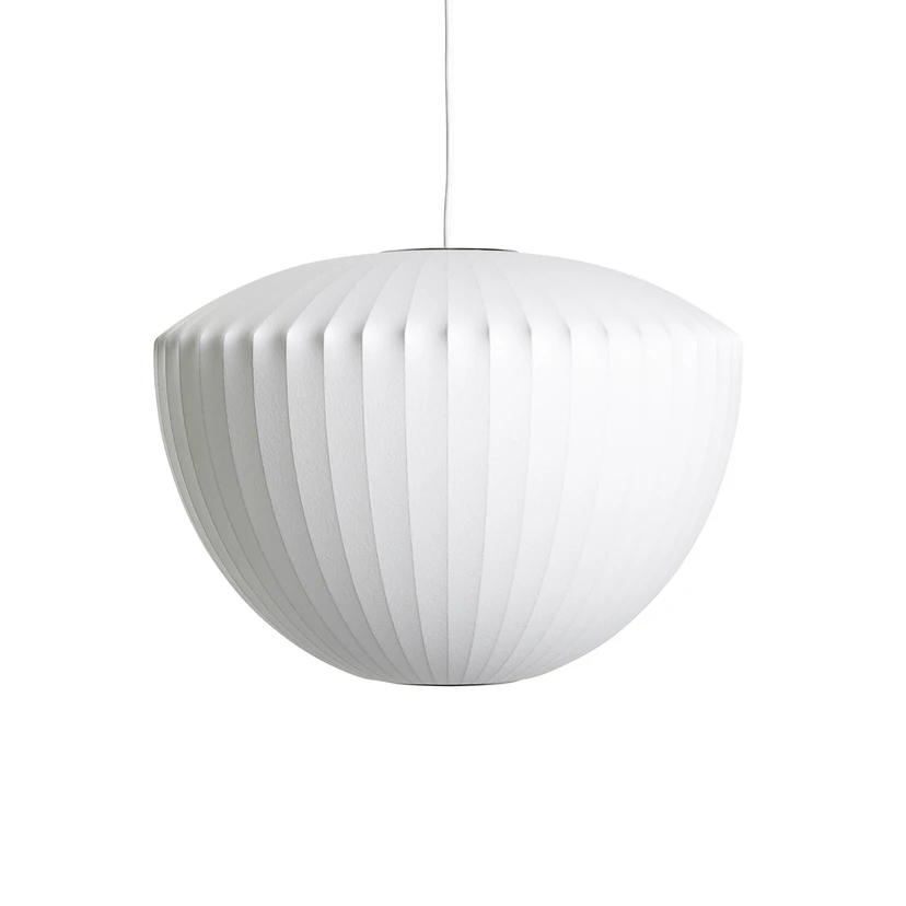 Suspension Nelson Apple Bubble avec abat-jour blancNelson Bubble est une série de suspensions aux formes les plus diverses, conçue dès 1942 par le designer américain George Nelson. Il s'est inspiré des lampes suédoises recouvertes de soie pour créer cette série de luminaires. Il souhaitait les utiliser dans son bureau, mais ils étaient trop chers pour lui. C'est alors qu'il a fait preuve d'une grande ingéniosité pour développer la série de luminaires Nelson Bubble. Les abat-jour de ces luminaires sont constitués d'une structure légère de différentes formes, composée d'entretoises en acier et d'un spray plastique autoréticulant, développé par l'armée américaine. La belle forme et la coloration blanche font le charme des abat-jour de cette série et produisent en outre un effet lumineux très agréable.L'architecte et artiste visuel George Nelson (1907 - 1986) est né dans le Connecticut et a été l'une des personnalités les plus influentes dans les débuts décisifs du design moderne. Il a fait ses études à Yale et pensait que le rôle d'un designer était d'améliorer le monde. Il s'inspirait souvent de la perfection des créations de la nature dans ses différents designs de meubles, de luminaires et même de bâtiments.