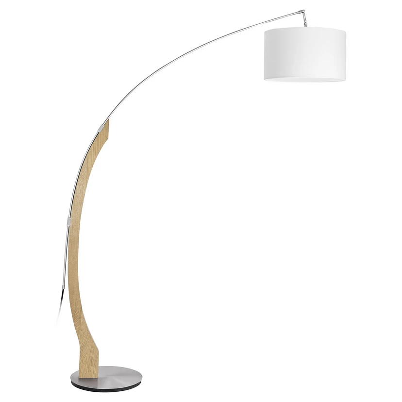 Lampe à arc Amos à hauteur réglable, en bois et coton