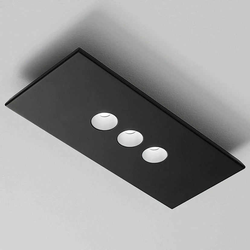 Idéal au mur et au plafond - le luminaire LED ConfortLe petit plafonnier LED Confort de forme rectangulaire est d'une polyvalence inégalée : il peut être installé au plafond ou, au choix, au mur. Il n'est pas seulement efficace en tant qu'installation individuelle, mais peut également être disposé de manière créative en groupes. Selon les besoins, il est possible de créer différents scénarios d'éclairage. En raison de sa forme réduite et plutôt discrète, le luminaire Confort est un élément qui s'intègre dans de nombreux styles d'aménagement modernes.Le corps du luminaire en aluminium laqué noir mat possède trois réflecteurs intérieurs de couleur contrastée qui abritent les LED. Grâce à leur orientation en forme d'entonnoir, ils diffusent la lumière blanche chaude vers le bas sans éblouir. Cela fait de l'applique ou du plafonnier LED Confort le diffuseur de lumière idéal dans les salons, les chambres à coucher ou les couloirs.