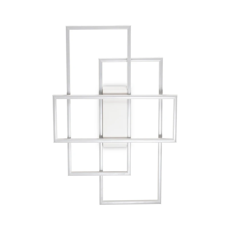 Plafonnier LED Frame géométrique Pour le plafonnier LED Frame, deux cadres métalliques rectangulaires, l'un plus grand et l'autre plus petit, ont été montés l'un sur l'autre. Chaque cadre est doté d'un cache en plastique opale derrière lequel sont installées des LED à lumière blanche chaude. Un plafonnier qui génère un flux lumineux élevé et assure un éclairage clair et efficace en énergie.