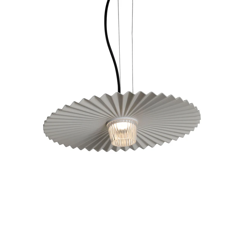 Avec Luca De Bona, Dario De Meo et Matteo Ugolini, trois designers ont contribué à Gonzaga. Le motif est un motif plissé minimaliste dont la structure, orientée linéairement vers l'extérieur à partir du centre, semble suivre les rayons de lumière qui s'efforcent de pénétrer dans l'espace infini. Sous la forme d'un disque rond en aluminium, les LED blanc chaud sont situées dans un couvercle transparent et nervuré. Le luminaire suspendu Gonzaga, résistant aux intempéries, peut être gradé par un variateur approprié et est extrêmement polyvalent - du salon et de la salle à manger meublés de haute qualité à la véranda, la terrasse ou l'entrée.