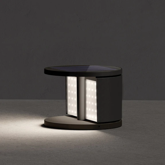 La lampe solaire LED SWING en aluminium anthracite a une forme simple et ronde. La lumière blanche chaude est dirigée vers un côté, ce qui fait de SWING un projecteur de sol idéal pour mettre en valeur des plantes, des façades ou des sculptures, ou pour éclairer les chemins piétonniers et les voies d'accès. Équipé d'un panneau solaire, d'une batterie et d'un détecteur crépusculaire, le projecteur d'extérieur SWING est totalement autonome.
