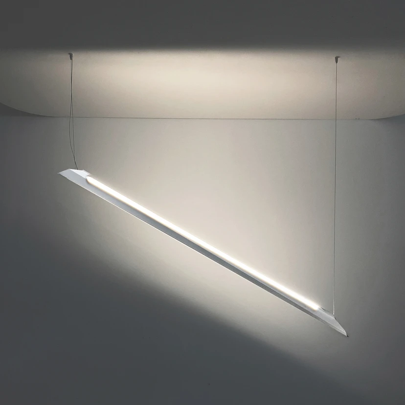Le fabricant italien Knikerboker est synonyme de savoir-faire et de matériaux de haute qualité qui rendent chaque lampe unique. Ainsi Schegge est délibérément en aluminium, très plat et équipé de délicats câbles d'acier. Ces quatre cordes permettent une suspension qui donne au luminaire suspendu à LED un aspect excitant et individuel. Ainsi, il est possible de monter Schegge avec une inclinaison ou simplement horizontalement et en équilibre. En combinaison avec d'autres, des images lumineuses passionnantes et de véritables œuvres d'art sont créées. Que ce soit au-dessus de la table de la salle à manger chez vous, dans un style d'ameublement moderne, ou dans la réception d'un hôtel - Schegge convient aussi bien aux deux domaines.