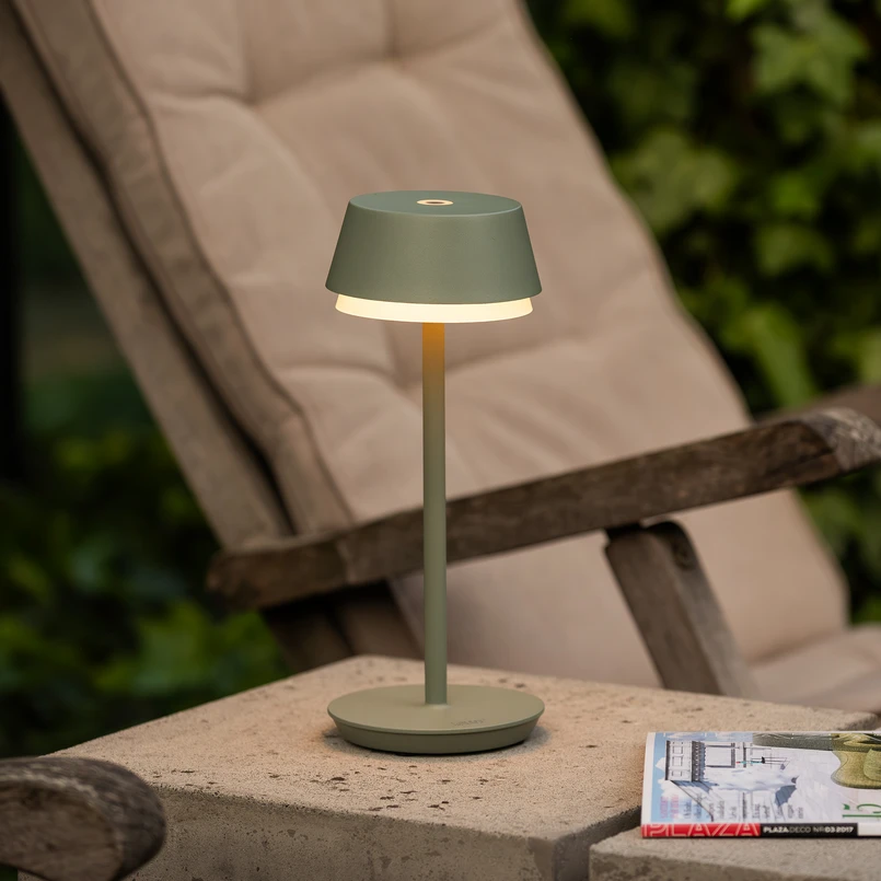 Lampe à poser LED rechargeable Lyon, vert/gris, IP54, variateur