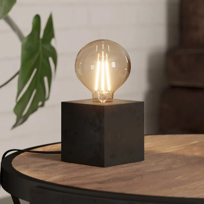 Lampe à poser Prestwick 2 cube en bois, noire