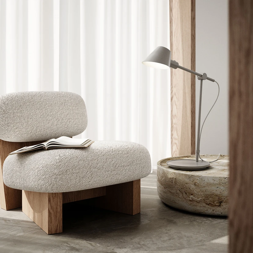 Pour le bureau ou le bureau à domicile, la lampe de table monochrome Stay Long est à la fois moderne et fonctionnelle. Sur la base ronde, une fine tige est fixée au bord, qui débouche sur une charnière et une autre extension. La tête de la lampe est biseautée des deux côtés et apporte ainsi la lumière vers le haut et vers le bas. Grâce à l'articulation de la tête et du bras, la lampe de table de bureau peut être réglée individuellement. Un interrupteur est situé derrière la source lumineuse sur la tête et permet d'allumer et d'éteindre facilement.