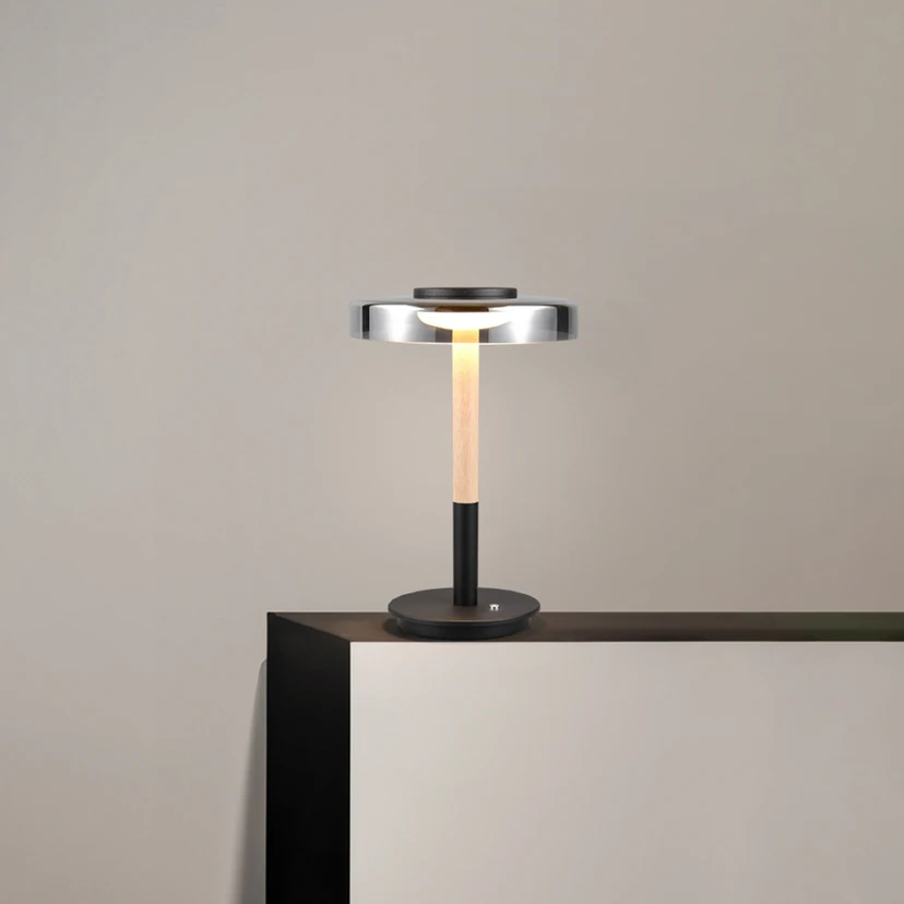 Lampe de table LED Celeste chrome/bois 35 cm verre/métal Touchdim