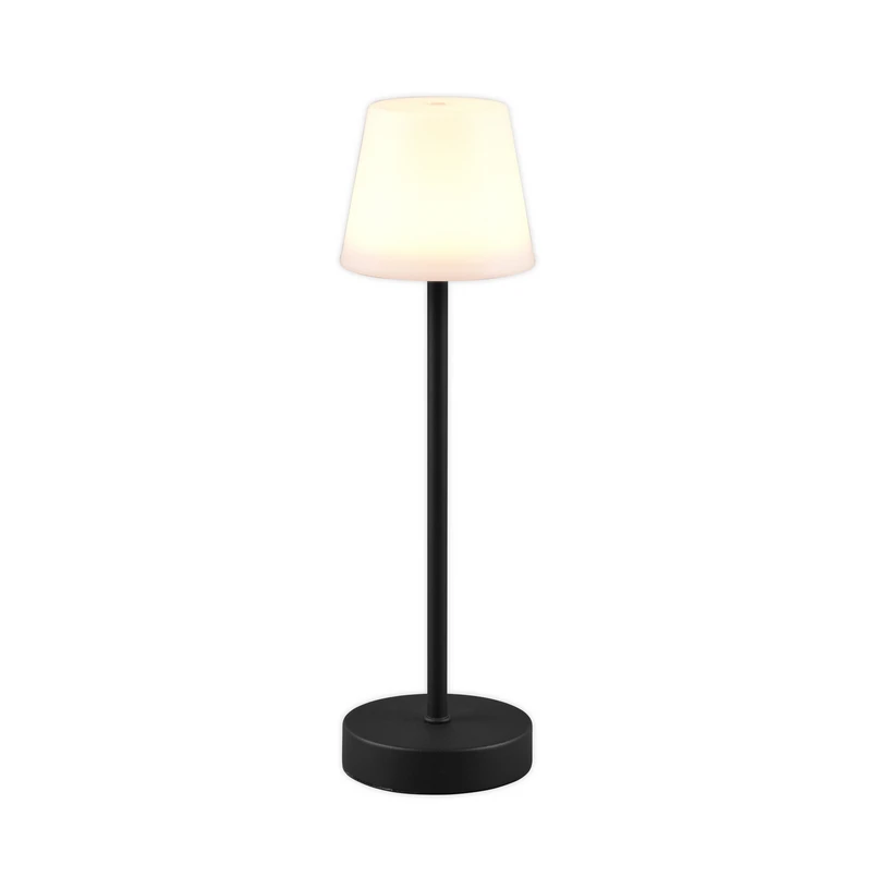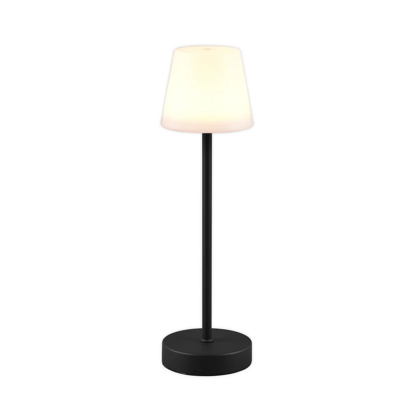 Lampe de table LED Martinez à intensité variable avec fonction CCT pour l'intérieur et l'extérieurMartinez est une lampe de table LED portable qui peut être utilisée de manière flexible à l'intérieur et à l'extérieur. Elle se recharge à l'aide du câble USB-C fourni et fournit jusqu'à 7 heures de lumière. La lampe de table peut par exemple être utilisée dans le salon, comme lampe de chevet dans la chambre à coucher, sur le balcon ou la terrasse. Particulièrement pratique, l'interrupteur tactile intégré à l'abat-jour permet de régler l'intensité de la lampe sur trois niveaux. De plus, il est possible de faire varier la couleur de la lumière en continu du blanc chaud au blanc lumière du jour. Les conditions d'éclairage peuvent ainsi être adaptées en un tour de main aux besoins personnels.- durée de charge complète de 9 heures- câble USB-C inclus- variateur tactile intégré (15% - 50% - 100%)- fonction CCT en continu (2.700 K - 6.500 K)- type de protection IP44