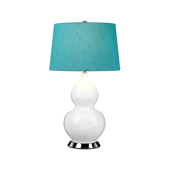 Lampe de table Isla - complément idéal d'un style d'habitation classique Cette jolie lampe de table attire déjà le regard lorsqu'elle n'est pas encore éclairée. L'abat-jour d'Isla est en tissu et trône sur une structure en céramique blanche en forme de ventre. Un pied en acier avec une finition en nickel poli complète l'esthétique réussie. Isla fournit un éclairage d'appoint doux pour les salons et les chambres à coucher. L'interrupteur marche/arrêt se trouve sur le câble.