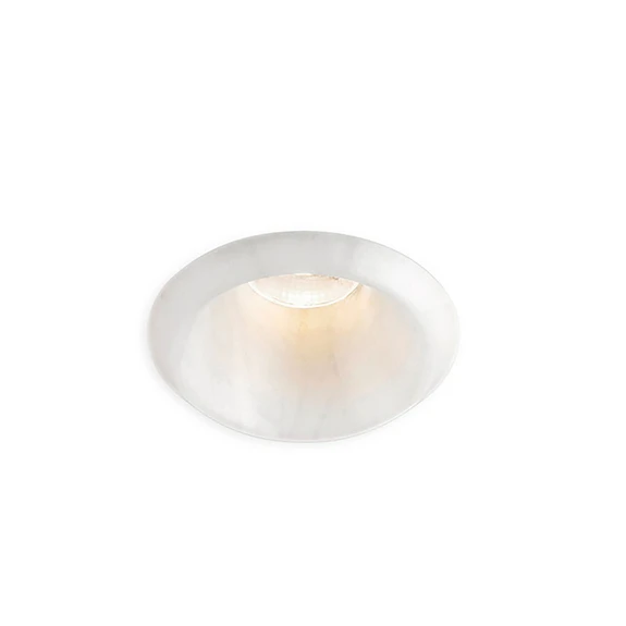 Play Raw, un plafonnier encastrable LED élégant en albâtre - polyvalent Le downlight rond Play Raw complète idéalement les styles d'aménagement classiques et modernes grâce à son cadre en albâtre marbré clair ; le plafonnier encastrable n'est pas seulement utilisable dans le domaine privé, mais convainc également au-dessus des étalages de marchandises etc. avec un très bon rendu des couleurs et un faible éblouissement. Play Raw peut également être utilisé dans des environnements humides, comme une grande porte à battants dans l'entrée. La conception avec une source lumineuse en retrait est visuellement élégante et permet de limiter le cône de lumière. - équipé de ressorts de montage - commutable ou à intensité variable selon le choix du ballast (non compris ; vendu séparément via les accessoires)