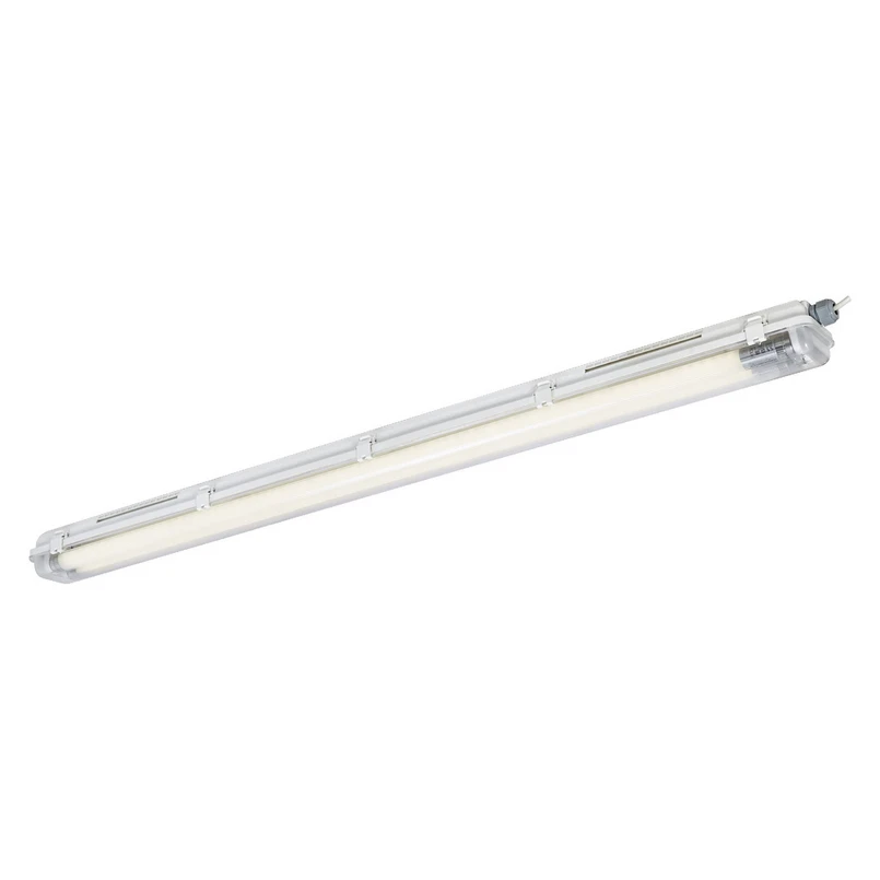 LEDVANCE Submarine PCR : un éclairage robuste pour les ateliers, les caves et les pièces humides Découvrez le Submarine PCR G13 T8 840, un luminaire pour pièces humides qui séduit non seulement par sa longévité, mais aussi par son haut niveau de protection IP65. Ce luminaire est spécialement conçu pour les environnements exigeants tels que les ateliers et les caves, où l'humidité et la poussière sont omniprésentes. Avec la douille standardisée G13, le remplacement de la source lumineuse LED n'est pas compliqué, ce qui simplifie l'entretien et augmente la flexibilité. La technologie LED assure un éclairage à faible consommation d'énergie qui non seulement éclaire efficacement la pièce, mais contribue également à réduire les coûts d'exploitation. Avec le LEDVANCE Submarine PCR G13 T8 840, vous misez sur une solution d'éclairage fiable qui transforme la pièce en un environnement productif et agréable.