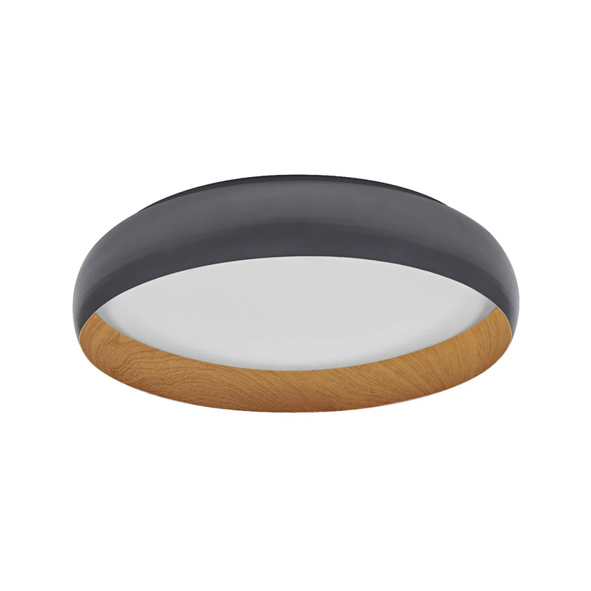 Plafonnier LED Orbis Livia en gris avec décor bois à l'intérieur Polyvalent, efficace sur le plan énergétique, décoratif et esthétique - telles sont les caractéristiques du plafonnier LED Orbis Livia de LEDVANCE. Le luminaire se compose d'un anneau métallique avec une finition gris foncé à l'extérieur et un beau décor en bois à l'intérieur, et d'un diffuseur en PMMA à travers lequel la lumière des LED intégrées est diffusée de manière homogène. Le luminaire est à intensité variable via l'interrupteur d'éclairage, sans installation supplémentaire d'un variateur. Des commutations répétées permettent de faire varier l'intensité lumineuse sur trois niveaux (100 % 50 %, 15 %). Le plafonnier Obis Livia s'intègre dans de nombreux styles d'aménagement et est livré avec le matériel de montage.