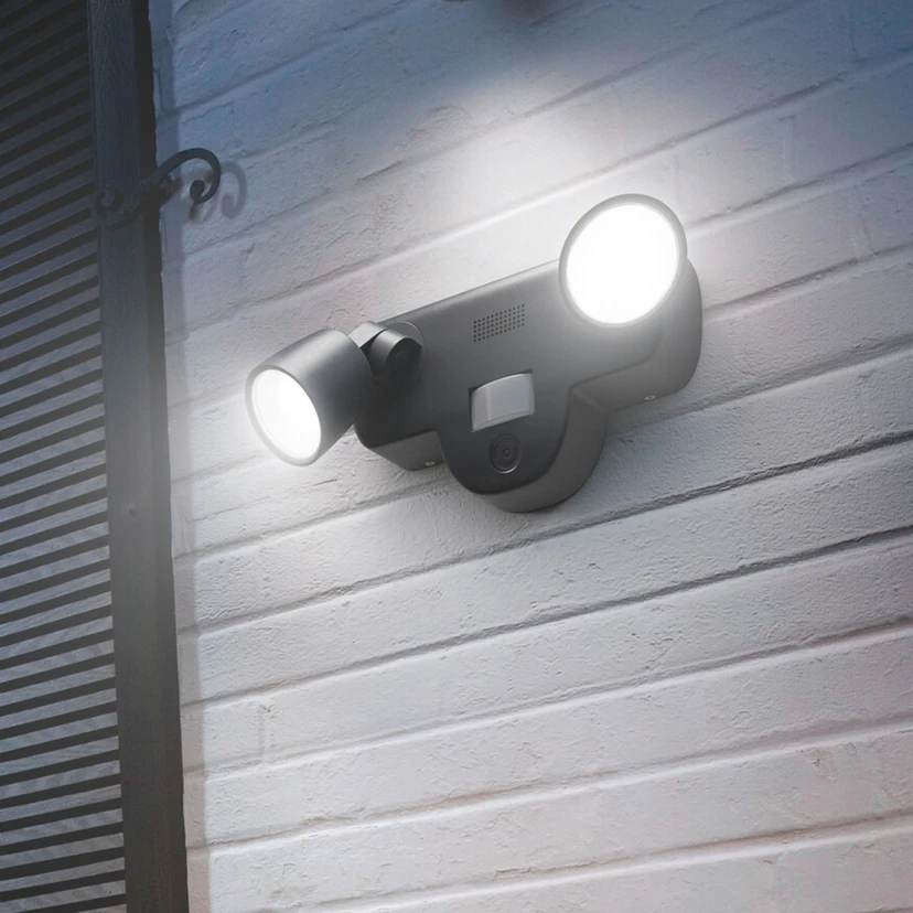 Applique murale d'extérieur Multispot Camera, compatible Wi-Fi L'applique murale d'extérieur Multispot Camera, en aluminium gris foncé, est composée de deux spots réglables, d'un capteur de lumière du jour et de mouvement et d'une caméra avec transmission d'images en direct en HD. Le luminaire dispose en outre d'un dispositif de communication à distance et d'une fonction d'alarme. L'enregistrement des données se fait sur la carte mémoire à utiliser ou dans le LEDVANCE SMART Cloud après connexion via WLAN. Ainsi, la commande vocale est également possible. L'application sur tablette/smartphone permet d'effectuer tous les réglages, de suivre les images en direct de la caméra ou de communiquer avec les visiteurs, etc. L'allumage de la lumière et l'activation de la caméra peuvent également se faire automatiquement grâce au capteur installation simple et rapide- sentiment de sécurité accru grâce à la luminosité élevée- matériaux de haute qualité- contrôlable via l'application LEDVANCE SMART App- commande vocale possible via Google Assistant ou Amazon Alexa- interphone intégré et fonction d'alarme- gradable- caméra avec transmission d'images HD en direct- indice de résistance aux chocs IK05- zone de détection capteur : angle de détection 90°, zone de détection 5 - 10 mètres- seuil de déclenchement capteur de lumière du jour 10 à 500 lx- temps de commutation réglable par capteur de mouvement : 5 secondes à 6 minutes