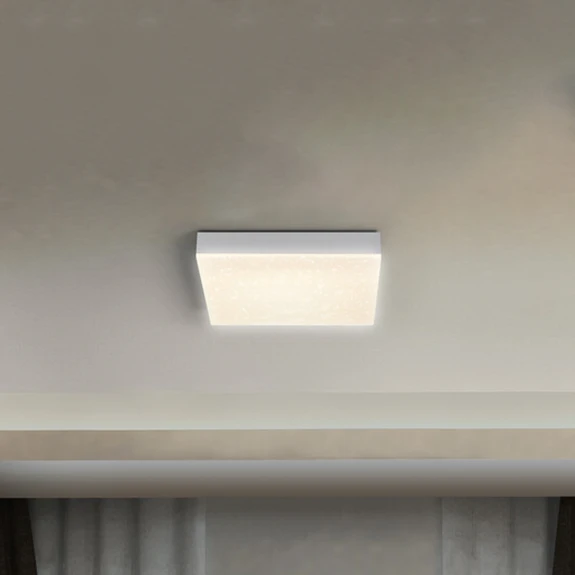 Panneau LED Planon FL Sparkle avec fonction CCT et technologie SMART WiFiLe plafonnier LED plat et carré Planon FL Sparkle peut être commandé intelligemment grâce à la technologie WiFi, et ce après connexion au réseau WLAN par tablette ou smartphone avec l'application LEDVANCE SMART WiFi disponible gratuitement pour les appareils Android et iOS. Une commande vocale avec Google Assistant ou Amazon Alexa est également possible. Le panneau est conçu sans cadre et doté d'un couvercle en plastique qui, grâce à l'effet Sparkle, crée un effet de lumière étoilée scintillante dans la pièce. La luminosité et la température de couleur sont réglables en fonction de la situation. Le panneau LED est facile et rapide à installer, tout le matériel de montage est fourni.- dimmable- couleur de lumière réglable : blanc chaud (3.000 K) à lumière du jour (6.500 K)- intégration intelligente via WLAN- contrôlable via l'application LEDVANCE SMART WiFi- commande vocale possible via Google Assistant ou Amazon Alexa
