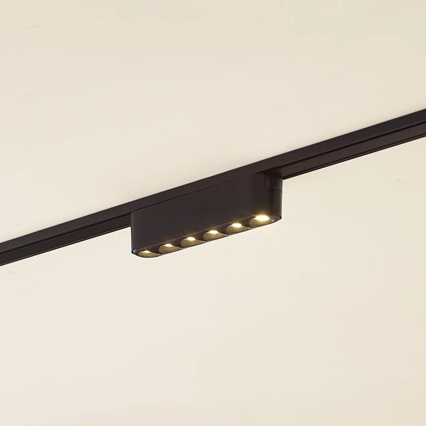 Luminaire sur rail à 6 lampes LED pour la série Lumaro - un éclairage moderne pour l'intérieur Le luminaire sur rail à LED Lumaro est une solution d'éclairage élégante qui allie esthétique moderne et flexibilité fonctionnelle. La source lumineuse LED intégrée du Lumaro assure un éclairage efficace sur le plan énergétique, qui permet non seulement de réduire la facture d'électricité, mais qui convainc également par sa longue durée de vie. La couleur de lumière réglable (CCT) permet d'adapter la couleur de la lumière selon les besoins, ce qui permet de créer différentes ambiances et atmosphères - des tons chauds pour une ambiance de soirée conviviale aux nuances plus froides pour un travail concentré. En outre, elle est à intensité variable sur quatre niveaux (10 %, 20 %, 50 % et 75 %). La fonction de variation et la fonction CCT sont toutes deux commandées à l'aide d'une télécommande qui n'est pas fournie, mais qui peut être achetée séparément via les accessoires. Le luminaire LED Lumaro peut être intégré dans le système de lampes LED sur rail du même nom et permet un montage simple et aisé. Il offre en outre d'innombrables possibilités de conception avec d'autres éléments de rails et d'éclairage qui permettent une flexibilité maximale et peuvent être étendus ultérieurement. - doit être combiné avec le driver LED Lumaro 48V pour fonctionner Veuillez noter que le système de lampes LED sur rail est exclusivement compatible avec les accessoires de la série Lumaro. Pour éviter toute confusion avec d'autres systèmes, veuillez ne combiner que des accessoires et des systèmes de rails de la série du même nom.
