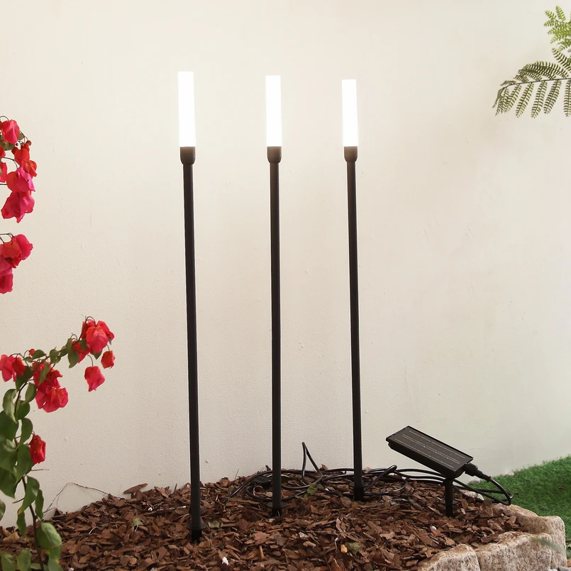 En kit pratique de 3 pièces - la lampe solaire LED Balian avec piquet de terre La lampe solaire LED Balian est un kit de 3 pièces équipé d'une source lumineuse LED intégrée. Avec une température de couleur de 3000 K, la lampe produit une lumière chaude et confortable, parfaitement adaptée à un éclairage cohérent en extérieur. La protection IP65 garantit que la lampe peut également être utilisée à l'extérieur. Caractéristiques techniques - câble USB-C inclus - 4 x piquets de terre inclus - panneau solaire 24V / 100mA inclus - batterie Li-ion 3,7Vdc / 1200mAh incluse - durée de vie de la batterie 9h - différents modes d'éclairage réglables