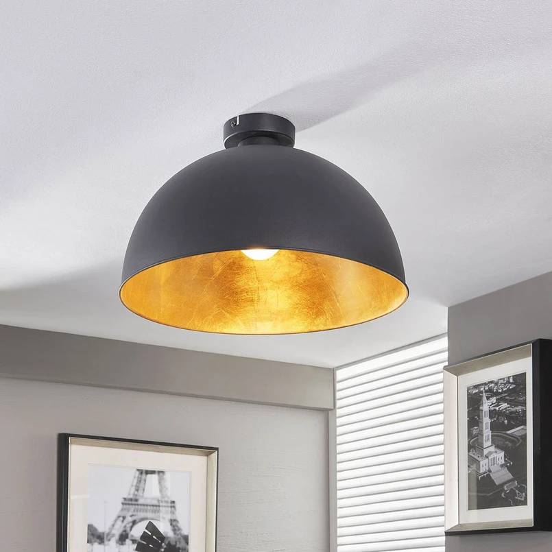 Lindby plafonnier Lya, Ø 40 cm, noir-or, métal