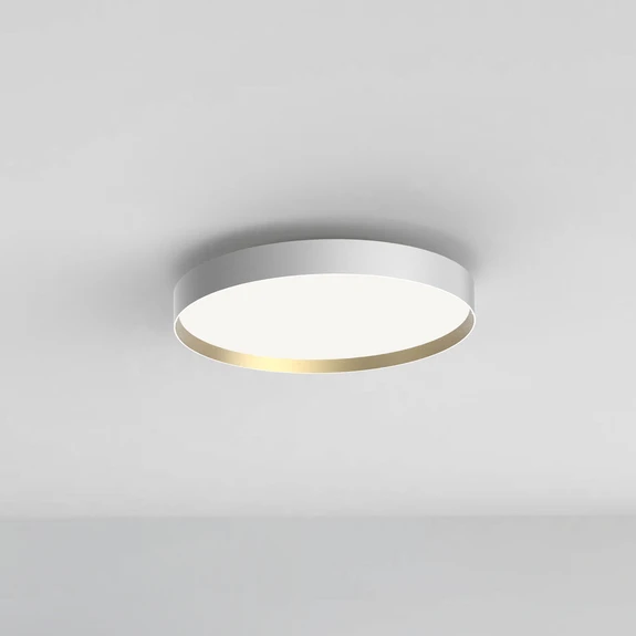 Plafonnier LED Lucia avec cadre rond et diffuseur prismatique Le design intemporel du plafonnier LED Lucia permet de le combiner avec de nombreux concepts d'aménagement, qu'ils soient classiques ou modernes, dans un environnement privé ou public/commercial. Un cadre étroit en aluminium, en forme de cylindre court, entoure le diffuseur plat. Ce dernier assure, grâce à sa structure microprismatique, une diffusion homogène de la lumière directe blanc chaud ; l'éblouissement et la formation d'ombres sont minimisés - bon rendu des couleurs : CRI > 90 - gradation externe (section de phase)