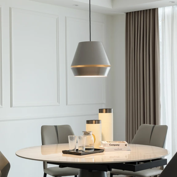 Lucande Mynoria Suspension LED, gris, aluminium, Ø 35 cm