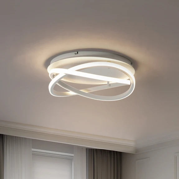 Plafonnier LED moderne Aldric avec un cercle lumineux plein d'élan Le plafonnier LED Aldric possède une fonction CCT et assure une lumière blanche réglable individuellement. Ce plafonnier se distingue par sa source lumineuse LED intégrée, qui est non seulement efficace sur le plan énergétique, mais aussi durable. Que ce soit dans le salon, la salle à manger ou le couloir, le plafonnier LED Aldric s'adapte parfaitement à chaque atmosphère et soutient un style moderne. Si l'on combine le luminaire avec un variateur d'intensité en début ou en fin de phase, il est possible de le faire varier en continu.