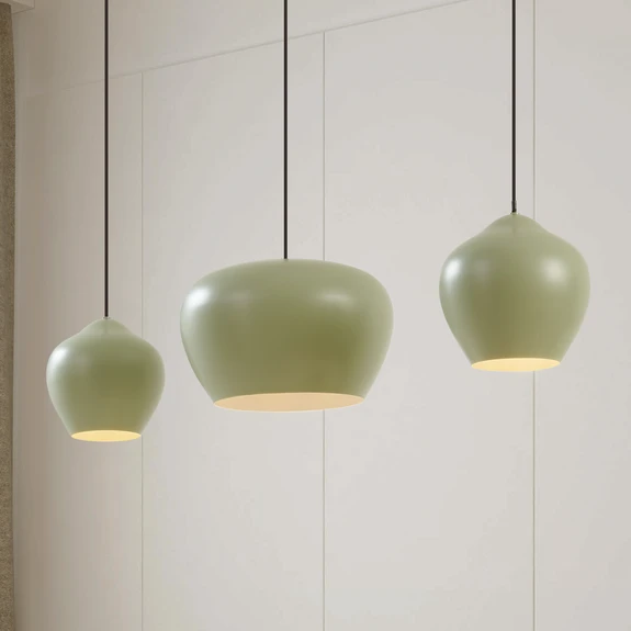 Le design scandinave rencontre l'élégance fonctionnelle : suspension Malisa Découvrez la suspension Malisa - un enrichissement pour chaque intérieur qui séduit non seulement par sa couleur verte, mais aussi par sa construction à 3 lampes en métal. Inspiré du style scandinave, cet élément d'éclairage apporte une atmosphère harmonieuse dans vos pièces. Que ce soit dans le salon, au-dessus de la table de cuisine ou comme élément central dans la salle à manger, Malisa promet une diffusion agréable de la lumière et un complément élégant à votre concept d'habitat. Le luminaire est conçu pour être utilisé avec un variateur d'intensité variable externe, ce qui vous permet d'ajuster la luminosité selon vos besoins afin de créer l'ambiance souhaitée, de l'apaisant au stimulant.