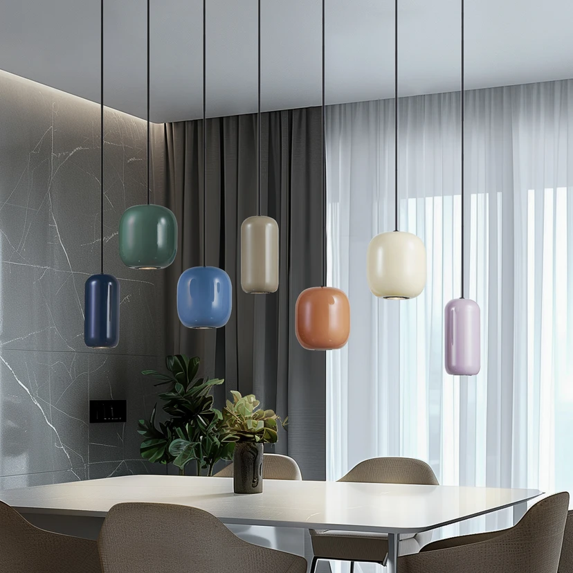 Suspension Narion à 7 lampes avec abat-jours colorés Mettez des accents lumineux attrayants avec cette lampe de belle forme et donnez à votre intérieur ce petit quelque chose en plus. La lampe s'harmonise avec presque tous les styles et son design exceptionnel en fait un élément phare de vos pièces. Vous pouvez régler la luminosité selon vos besoins à l'aide d'un variateur d'intensité variable externe (non inclus). Toutes les qualités et les points forts qui définissent la marque Lucande sont réunis dans cette lampe. Le métal est utilisé pour la fabrication. Le luminaire en bleu, orange, bleu foncé, lilas, jaune, beige et vert est adapté à l'utilisation d'ampoules avec un culot GU10. Ce plafonnier fait naître une belle atmosphère dans chaque zone et apporte une composante chaleureuse à votre intérieur. Le plafonnier est un moyen décoratif de faire briller vos pièces et constitue donc un excellent choix pour votre maison. Complétez l'éclairage d'ambiance de vos quatre murs avec cette lampe.