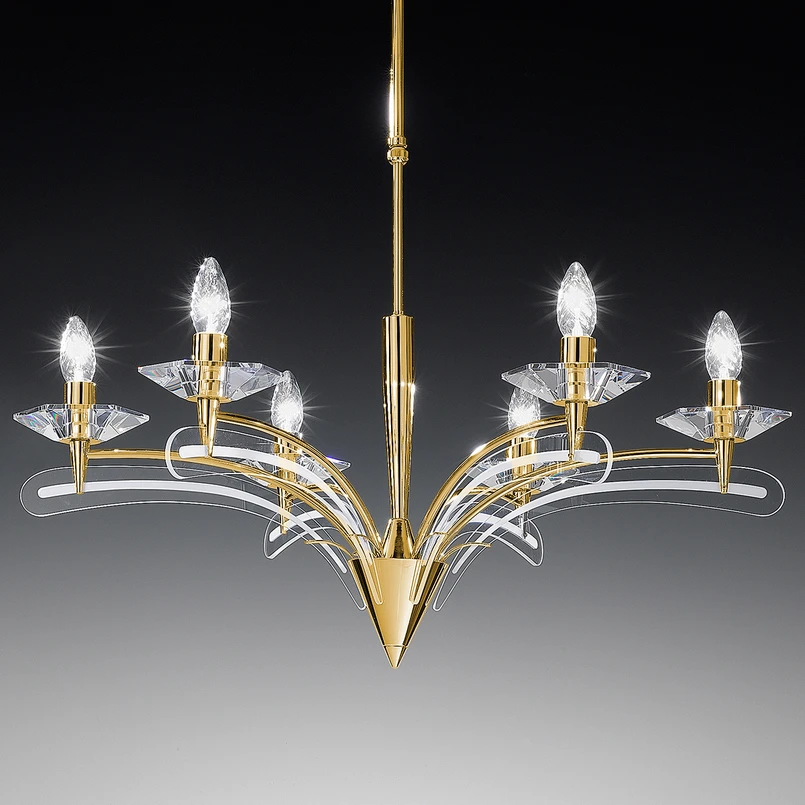 Lustre ICARO à 6 lampes,av. verre cristal, doré