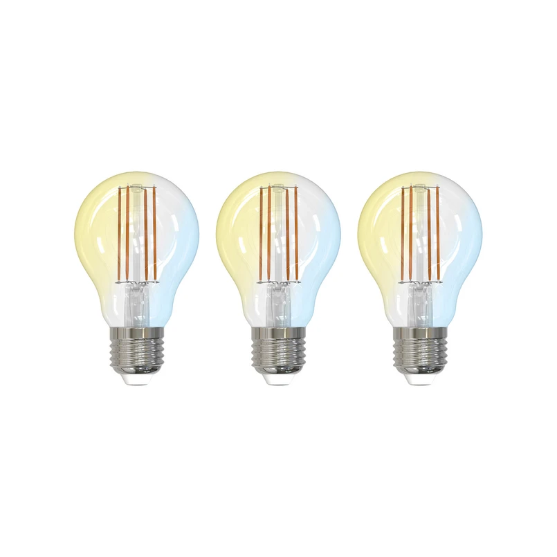 Ampoule à filaments avec culot E27 - contrôlable via ZigBee, Tuya et Philips Hue Cette ampoule peut être contrôlée via ZigBee, Tuya ou Philips Hue et permet un éclairage flexible. Elle possède une fonction CCT et peut faire varier sa couleur de lumière du blanc chaud (2 700 K) à la lumière du jour (6 500 K). Elle possède une surface claire et l'aspect typique d'une ampoule à filament - angle de rayonnement 320° - intensité variable - la livraison s'effectue dans un pratique lot de 3 ampoules Les ampoules peuvent en outre être commandées avec l'APP LUUMR. Celle-ci est disponible pour Android et Apple et peut être facilement téléchargée sur https://play.google.com/store/apps/details?id=luumr.app&hl=en_US ou https://apps.apple.com/de/app/luumr/id6470302637. Veuillez noter qu'un ZigBee Smart Hub est obligatoire pour utiliser les fonctions intelligentes de l'ampoule. Le Hub Zigbee peut ensuite être programmé dans l'application Tuya ou LUUMR