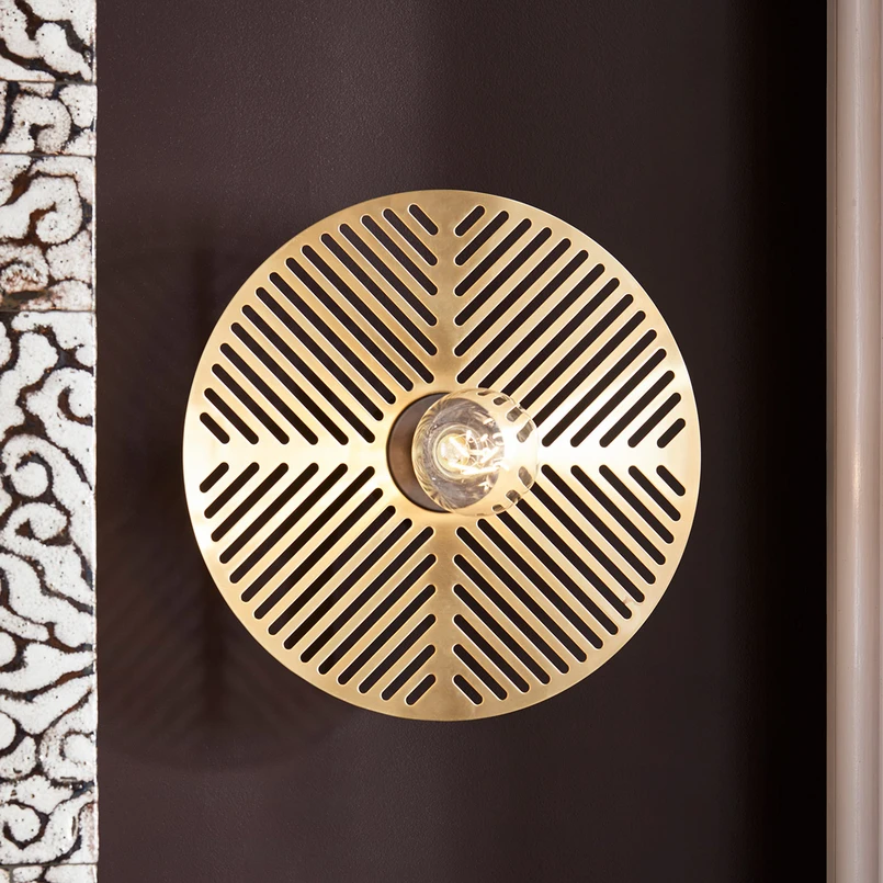 Le design élégant et moderne caractérise l'applique Waterlily : Son abat-jour est constitué d'une plaque métallique circulaire uniformément perforée, au centre de laquelle se trouve la douille de l'ampoule. Ainsi, la lumière de la lampe utilisée est uniformément répartie dans toutes les directions. Le motif ajouré dans le métal se détache alors comme une ombre. La beauté de cette applique peut être encore mieux mise en valeur en choisissant une source lumineuse esthétique, comme celles qui peuvent être commandées séparément dans la rubrique accessoires.