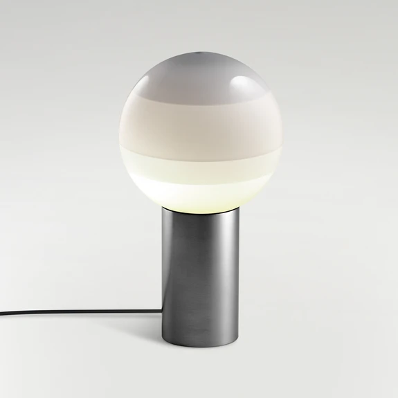 Lampe à LED de table Dipping Light S à intensité variable Dans le cas de la lampe de table LED Dipping Light S, les nuances de couleur constituent une grande partie de l'attrait visuel, raison pour laquelle ce diffuseur de lumière décoratif fait également bonne figure lorsqu'il est éteint. Le corps du luminaire est en verre soufflé blanc brillant et a été peint dans sa partie supérieure. Le verre sphérique trône sur un support métallique en forme de cylindre également laqué. Le design actuel est signé Jordi Canudas et donne une impression de fraîcheur et de vivacité. L'abat-jour en verre est équipé de LED d'un blanc chaud dont la douce lueur crée une ambiance très conviviale. La luminosité peut être réglée en continu grâce au variateur d'intensité intégré et ainsi être adaptée aux besoins personnels. L'interrupteur est intégré au câble d'alimentation. - Lumière sans scintillement - Câble : noir