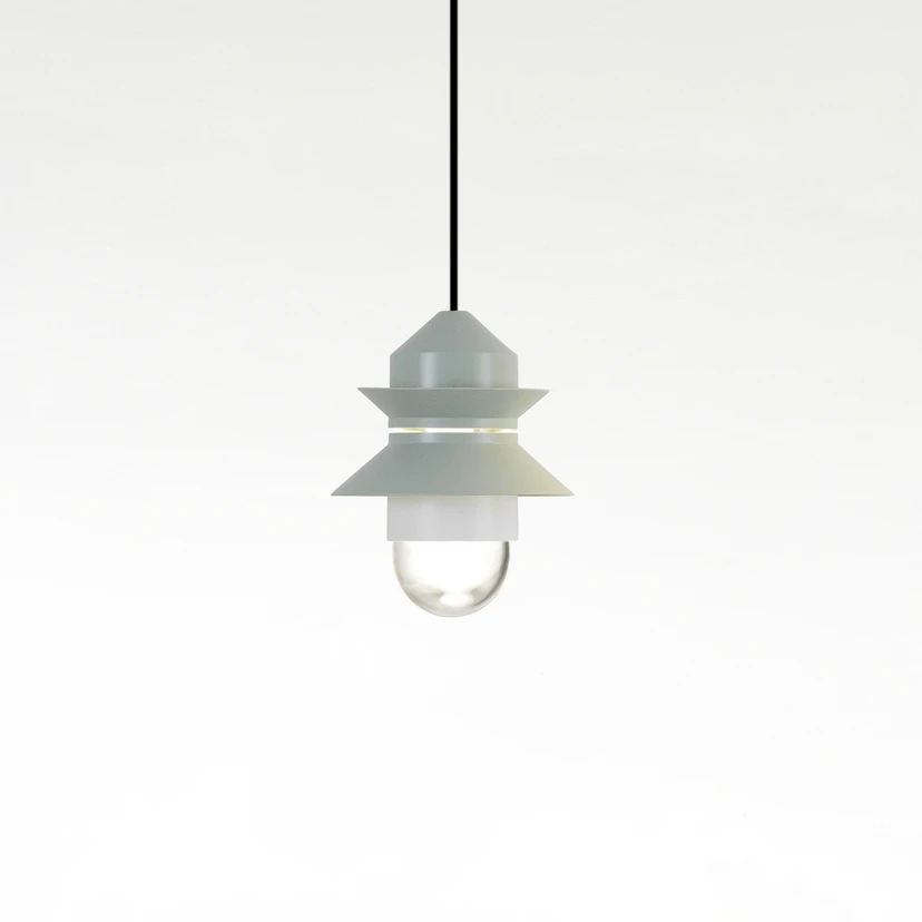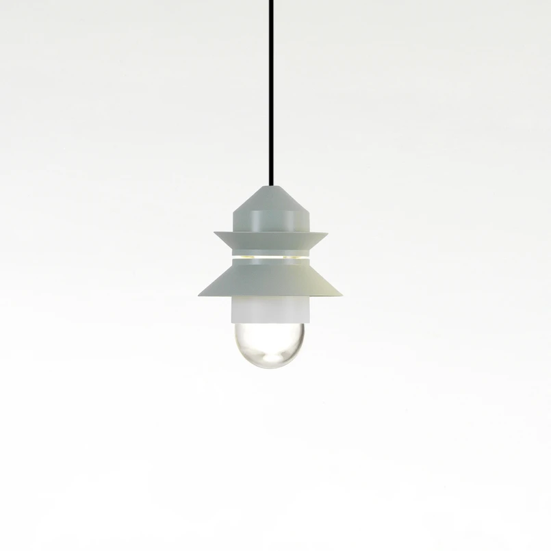 Suspension Santorini en verre soufflé et pressé en forme de lanterne Comme point fort particulier, la suspension Santorini dispose de deux abat-jour ainsi que d'une entretoise en polycarbonate, qui peuvent être utilisés dans un nombre, un ordre et une orientation librement choisis. Ils se fixent facilement sur le corps en verre soufflé et pressé à la bouche. De cette manière, non seulement l'aspect extérieur est modifié, mais un jeu de lumière directe et indirecte est également possible. Santorini est soutenu par un support en métal qui est relié au rosace, également en métal, par le biais du câble de raccordement recouvert de textile. L'éclairage est assuré par une ampoule LED à culot E27, disponible séparément dans les accessoires. Le studio de design Sputnik, originaire de Valence, s'est inspiré des lanternes utilisées sur les bateaux de pêche et a créé cette suspension pour l'intérieur après le succès de la série lancée en 2014 pour l'étendre en 2018.