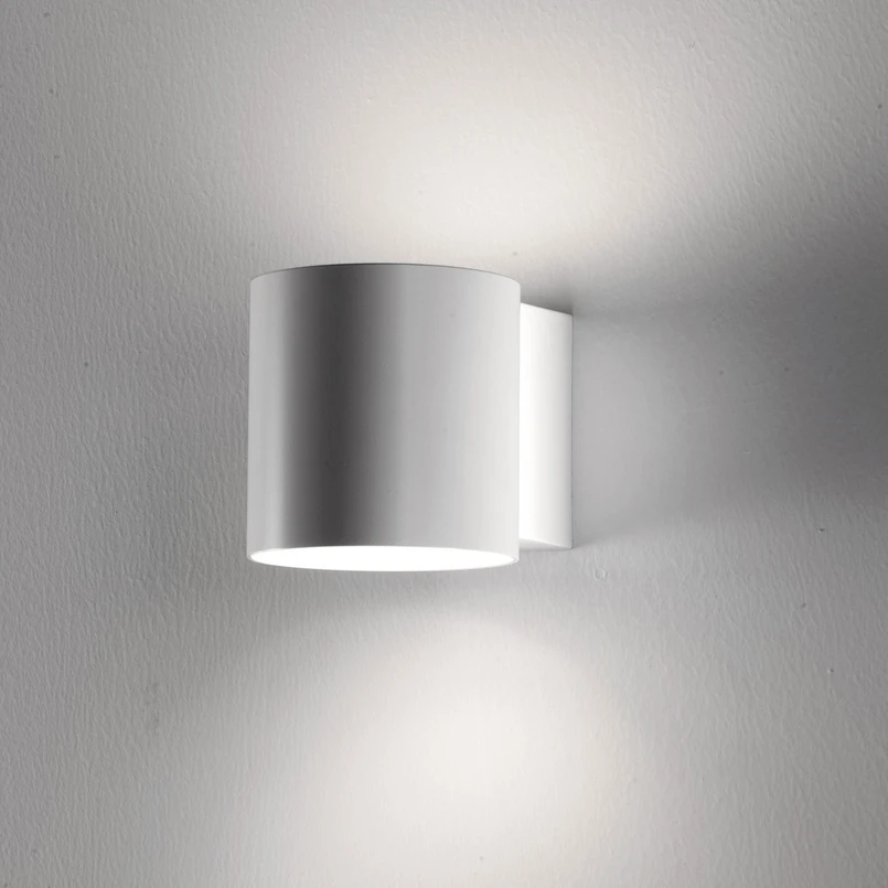 En tant que lampe murale à monter et à descendre près d'une porte ou le long d'un couloir, Tube fournit une lumière agréable. Le support mural angulaire en résine synthétique porte un cylindre ouvert verticalement en métal laqué blanc. La lumière de la lampe LED E27 utilisée (sources lumineuses appropriées disponibles via les accessoires) peut ainsi briller sans entrave vers le haut et vers le bas, tandis qu'elle est complètement protégée du côté de la pièce, évitant ainsi tout éblouissement.