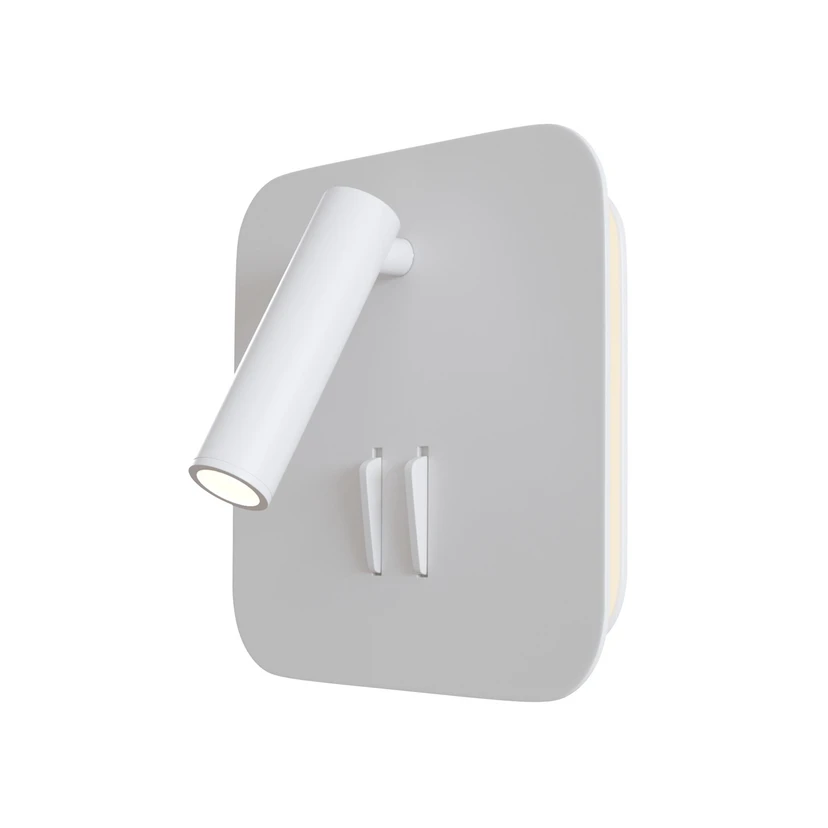 Applique murale LED Ios 176 avec deux sources lumineuses L'applique murale LED Maytoni Ios 176 est le choix idéal pour les espaces de vie modernes. Avec ses sources lumineuses LED intégrées, elle assure un éclairage à faible consommation d'énergie et crée une atmosphère agréable dans la chambre à coucher ou le salon. La forme angulaire de la lampe lui confère un design intemporel qui s'intègre parfaitement dans tous les intérieurs. La liseuse diffuse la lumière directement vers l'avant, tandis que la deuxième source lumineuse diffuse la lumière indirectement sur les côtés, ce qui crée un bel effet. Les deux sources lumineuses peuvent être commandées séparément à l'aide des interrupteurs intégrés au boîtier.