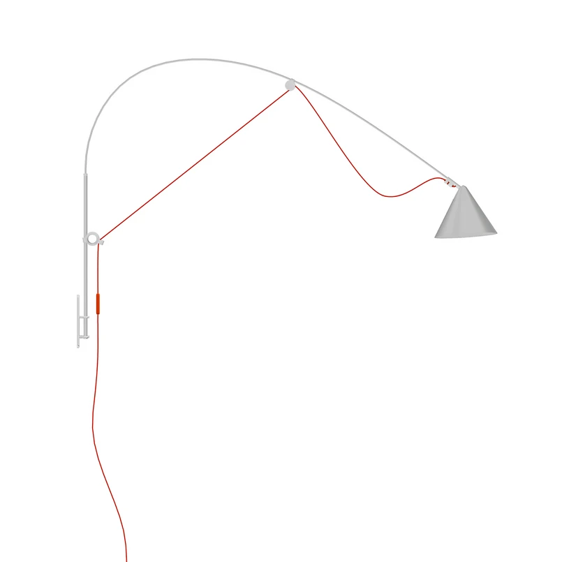 Applique murale LED à intensité variable AYNO avec câble de connexion et bras inclinableL'applique murale AYNO fait littéralement le lien entre le premier luminaire à lumière orientable présenté par l'ingénieur Curt Fischer (1890 - 1956) et le design ultramoderne pour les habitations, les commerces et les bureaux aménagés de manière moderne. L'entreprise midgard, fondée par Fischer, se charge aujourd'hui encore de la production de la lampe en Allemagne ; le concept de la série AYNO est dû au designer industriel Stefan Diez.À partir d'une fixation murale minimaliste et d'un bras vertical en acier, une console en fibre de verre s'élève. Le câble de la fiche passe par deux anneaux de réglage qui peuvent être déplacés et permettent ainsi d'incliner la flèche vers le bas en ajustant la section de câble qui passe entre les anneaux de réglage. L'abat-jour conique orientable est en polycarbonate/plastique ABS recyclé et abrite un module LED de haute qualité (CRI ≥ 95) derrière un diffuseur structuré. Celui-ci peut être retiré sans outil en cas de défaut grâce à un système de fermeture à baïonnette. L'interrupteur variateur sur le câble textile permet la commande et le réglage en continu de la sortie de lumière - Lauréat du prix allemand du développement durable Design 2020