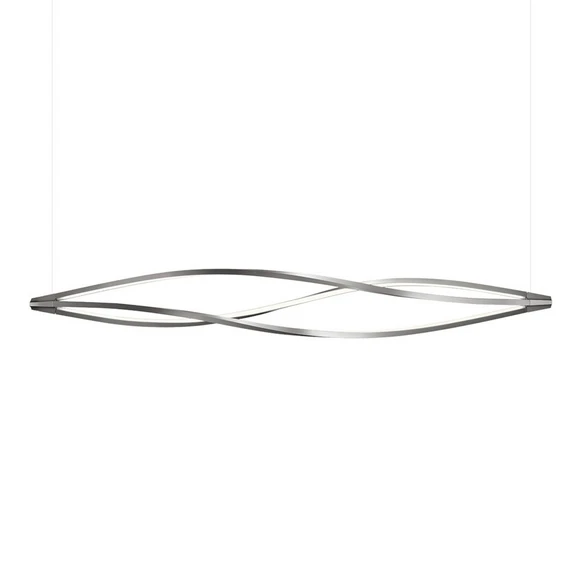 Le designer Arihiro Miyake a conçu les luminaires de la série In The Wind sous la forme d'un sergé de barres légèrement torsadées les unes autour des autres en forme de spirale, qui se rejoignent aux extrémités. Dans cette version de suspension, les trois profilés en aluminium sont orientés horizontalement, de sorte que la lumière blanc chaud des rubans LED placés à l'intérieur est principalement diffusée vers le haut et vers le bas. La suspension est ainsi particulièrement adaptée à l'éclairage de table, aussi bien dans les espaces privés que publics, dans un style d'aménagement moderne. - gradation externe DALI - câble de raccordement de 5 m avec rosace ; 2 suspensions en fil métallique de 3 m chacune ; chacune pouvant être raccourcie lors du montage