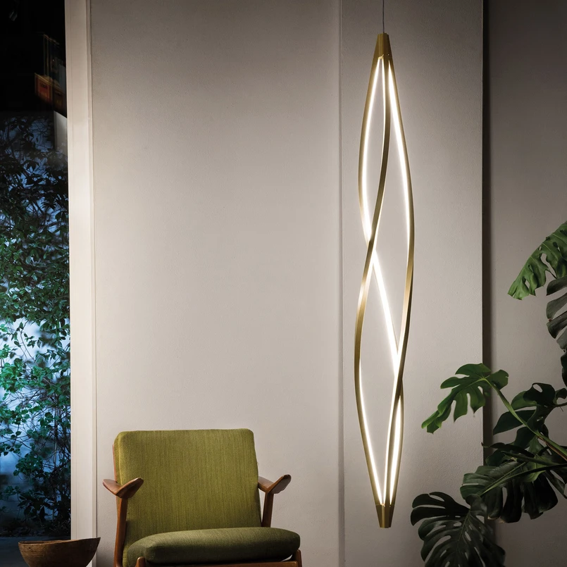 Luminaire suspendu à LED dans le vent - structure verticale de profils tordus