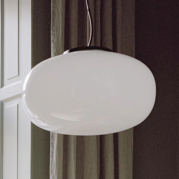 Suspension design danoise Karl-Johan de Signe Hytte La designer Signe Hytte s'est inspirée d'une excursion automnale en forêt pour sa série de luminaires Karl-Johan, ses luminaires ressemblent en effet à des champignons de par leur forme. Dans le cas de la suspension de cette série, c'est l'abat-jour ventru en Glas qui attire surtout l'attention. À l'intérieur se trouvent des LED. Signe Hytte a conçu cette série de luminaires pour l'entreprise de design danoise New Works. Outre les luminaires, New Works fabrique également des meubles et d'autres objets d'aménagement. Basée à Copenhague, cette entreprise allie design et art dans le style du minimalisme scandinave.