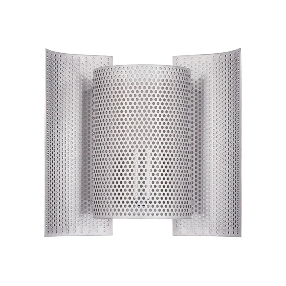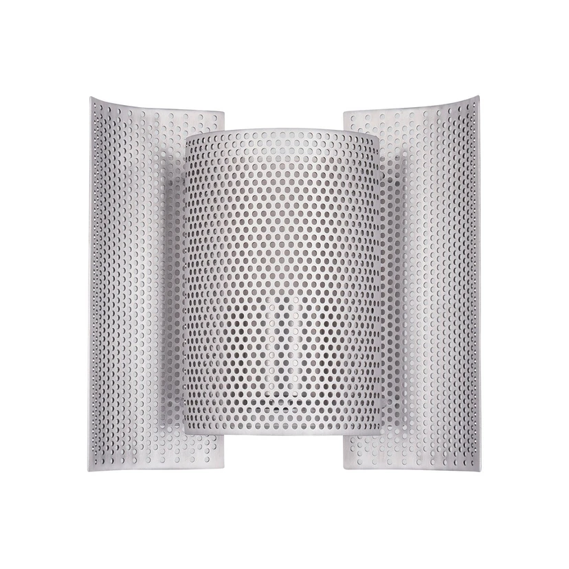 La lampe murale Butterfly perforated possède un design exceptionnel. Elle se compose de trois éléments en aluminium qui se chevauchent et servent d'abat-jour. La lumière produite se diffuse à l'intérieur de la pièce grâce au grand nombre de trous dans l'abat-jour et génère un jeu de lumière captivant. La surface en aluminium brossé complète avec bienveillance le design marquant et crée des accents frappants sur les murs de l'appartement.