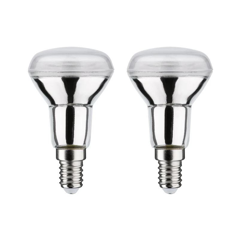 E14 5W Réflecteur LED R50 de Paulmann avec boîtier en verre argenté, blanc chaud, paquet de 2Cette ampoule à réflecteur LED R50 non dimmable avec culot E14 émet une lumière blanc chaud avec un angle de rayonnement de 36°. Cette ampoule est particulièrement adaptée aux spots et aux projecteurs. Livraison par lot de 2.