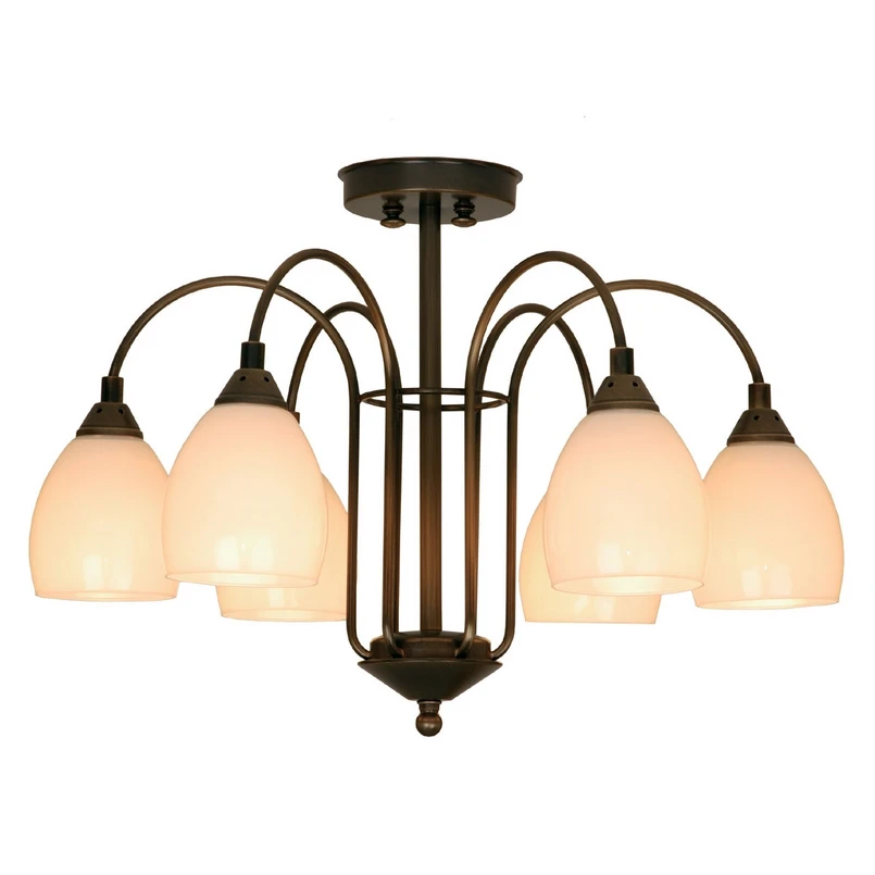 Plafonnier ANNO 1900 avec 6 diffuseurs en verre opale