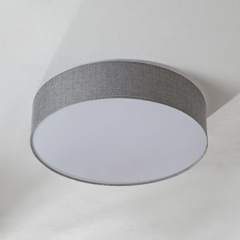 Plafonnier en textile Pasteri avec abat-jour gris en lin
