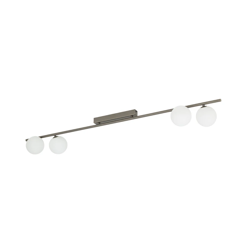 Plafonnier Imelo, marron, à 4 lampes, verre, longueur 140 cm