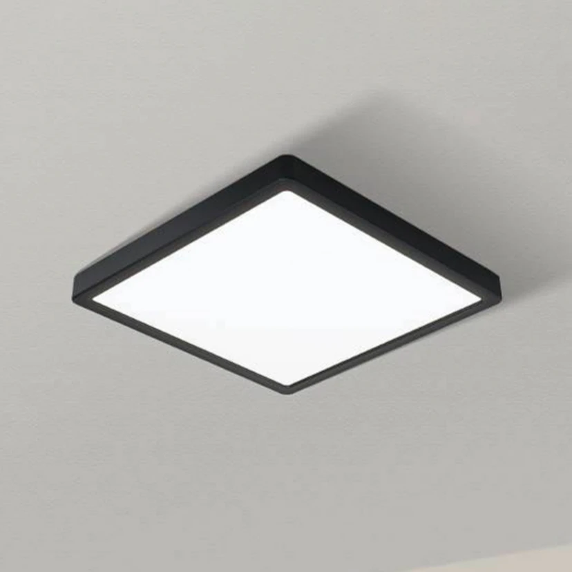 Plafonnier LED Fueva 5, IP20 noir 21x21cm