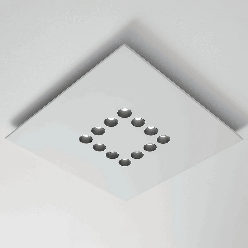 Simple mais convaincant - le plafonnier LED ConfortLe luminaire LED Confort est un plafonnier carré simple, fabriqué en aluminium de haute qualité. Le point fort de ce design ne réside pas tant dans sa forme que dans l'emplacement astucieux des LED. Celles-ci se trouvent à l'intérieur de petits réflecteurs de couleur contrastée qui, à première vue, ressemblent à de petits entonnoirs. Mais c'est justement cette forme particulière qui permet de diffuser la lumière directement et surtout sans éblouissement vers le bas. Cela permet une utilisation variée du plafonnier LED Confort. Avec son aspect extérieur réduit et minimaliste, il s'intègre dans de nombreux styles d'aménagement modernes. Qu'il s'agisse du salon ou de la chambre à coucher, du couloir ou du bureau, le design italien du fabricant de luminaires Icone apporte de la lumière dans chaque pièce.