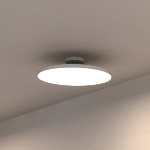 Plafonnier LED Kaito 2 Pro avec abat-jour réglable Le plafonnier LED Kaito 2 Pro se caractérise par son design moderne et son abat-jour inclinable et plat. L'abat-jour est fixé à la rosace ronde avec un petit écart au moyen d'une tige métallique de couleur contrastée. Le plafonnier LED Kaito Pro peut être installé de manière flexible dans l'espace de vie, par exemple dans le salon, le couloir ou la chambre à coucher. La lumière chaude est diffusée sans éblouissement dans l'environnement grâce au diffuseur blanc qui ferme l'abat-jour vers le bas et crée une atmosphère agréable dans la pièce à vivre. Un variateur de phase externe permet de régler l'intensité lumineuse du plafonnier, ce qui permet d'obtenir à tout moment des conditions d'éclairage optimales. Il est en outre possible d'incliner l'abat-jour pour diriger la lumière dans la direction souhaitée - Design Bonnelycke MDD