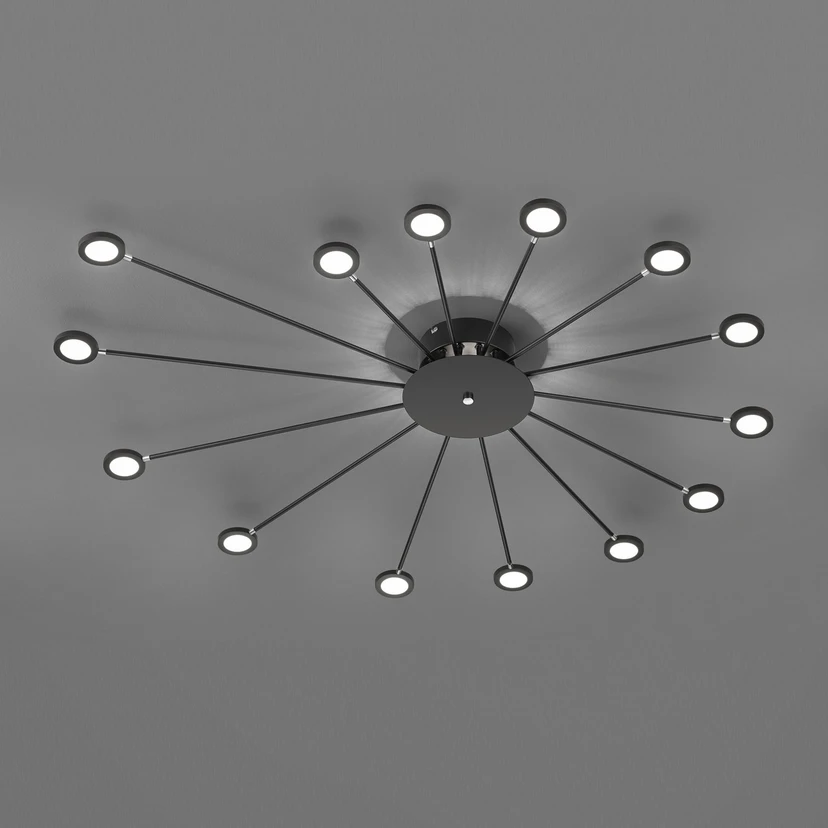 Plafonnier LED Peacock, 15 lampes, noir