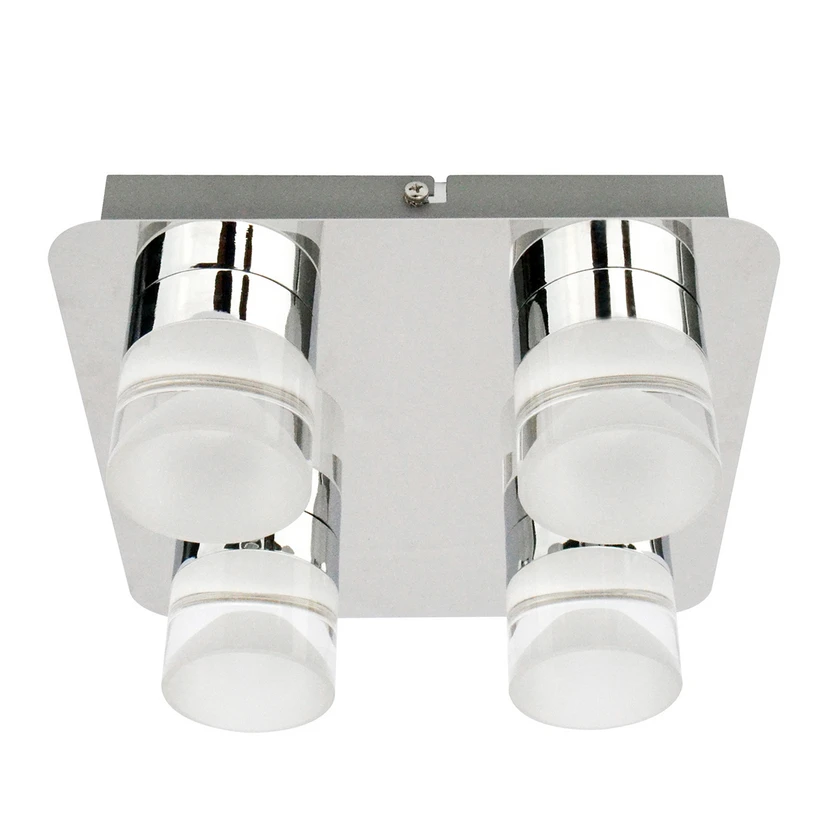 Avec ses quatre diffuseurs en verre acrylique de forme cylindrique et les LED qu’ils renferment, le plafonnier LED Stefanie vous offrira non seulement un éclairage très net, mais aussi une ambiance très sympathique. Les diffuseurs cylindriques sont implantés à égale distance les uns des autres sur une embase carrée aux angles légèrement arrondis, dont la surface de couleur titane affiche un aspect d’une grande brillance. Vous pourrez aussi monter le plafonnier en applique murale.