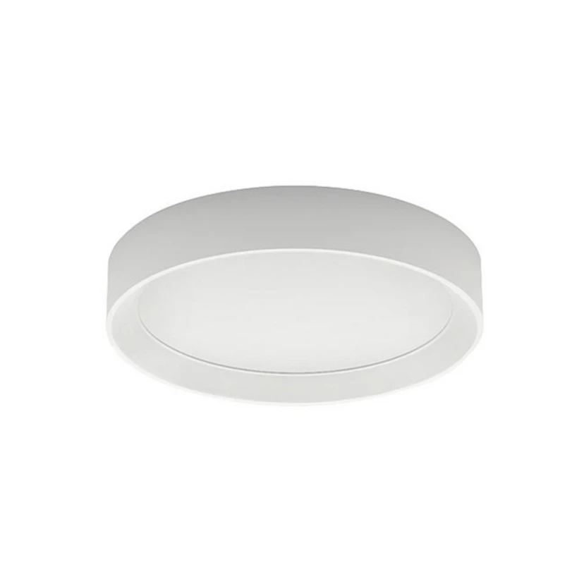 Le plafonnier Tara R à l’allure simple abrite des LED puissantes, dont le rendement lumineux assure un éclairage efficace même dans une pièce haute de plafond. Tara R est conçu comme un cercle simple, défini par un support en forme d’anneau en aluminium blanc laqué. Ce dernier entoure un diffuseur en polycarbonate blanc, qui émet la lumière LED blanc chaud sous forme d’éclairage direct homogène sur la surface ronde orientée vers le bas.