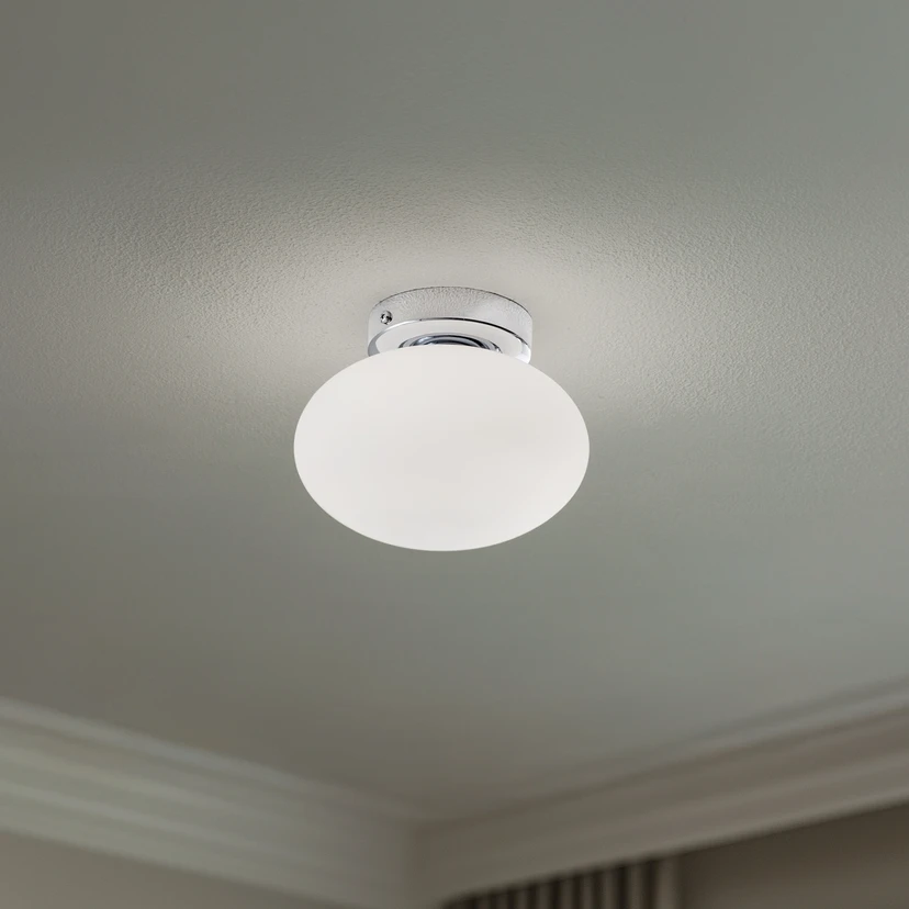 Plafonnier Ufo, chrome/blanc, Ø 18 cm, verre, G9